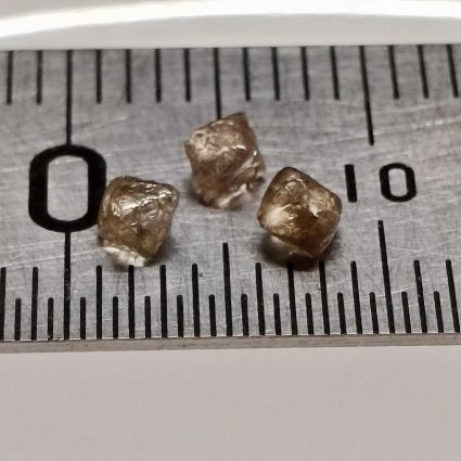 These very affordable, tiny “baby” Argyle Champagne octahedral diamonds, range from 0.16ct to 0.37ct. That’s about 3mm x 3mm in length and width.