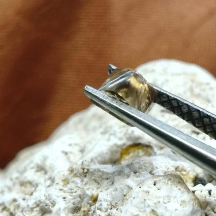 A very symmetrical gem, originally an octahedral diamond, laser cut in half, giving it a flat bottom. These stones lend themselves to be the central highlight of any setting.